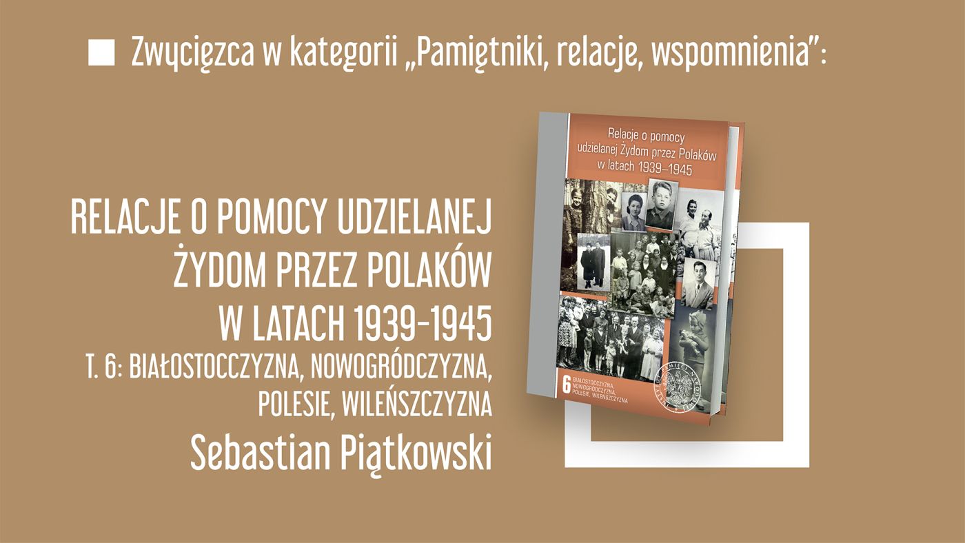 Relacje o pomocy udzielanej Żydom przez Polaków w latach 1939-1945, t. 6: Białostocczyzna, Nowogródczyzna, Polesie, Wileńszczyzna, wybór i opracowanie Sebastian Piątkowski, Lublin–Warszawa 2022